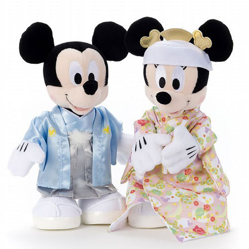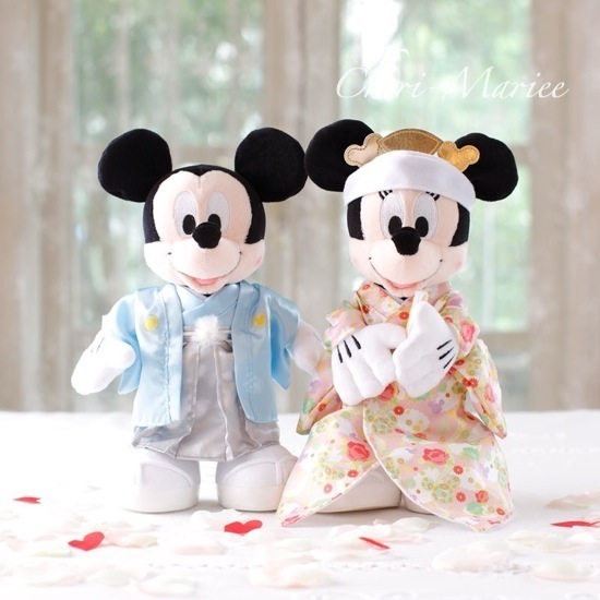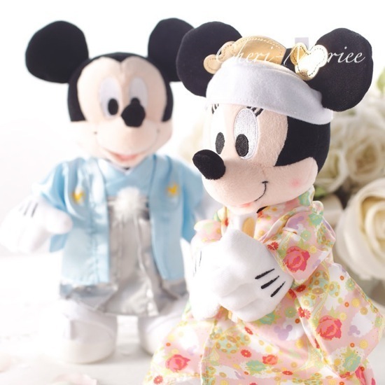 色鮮やかな打掛姿と、水色の袴姿のミッキー&ミニーです。
