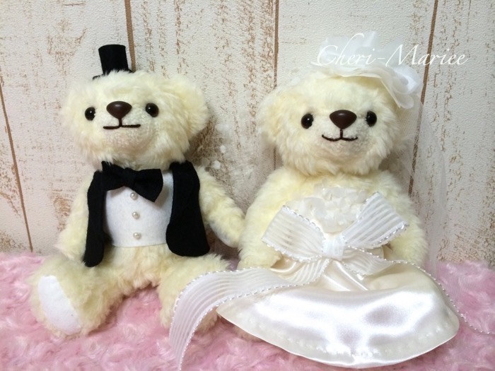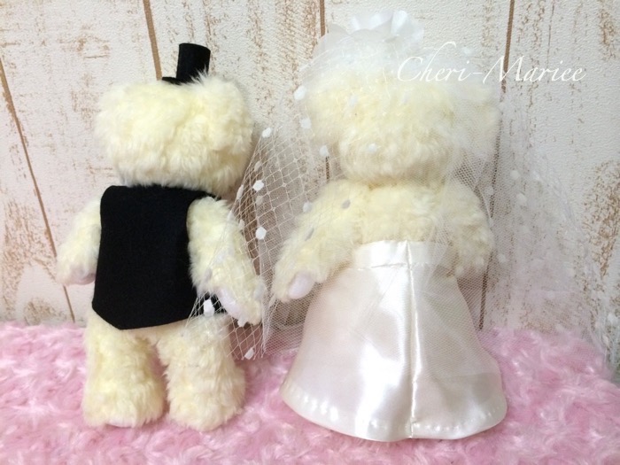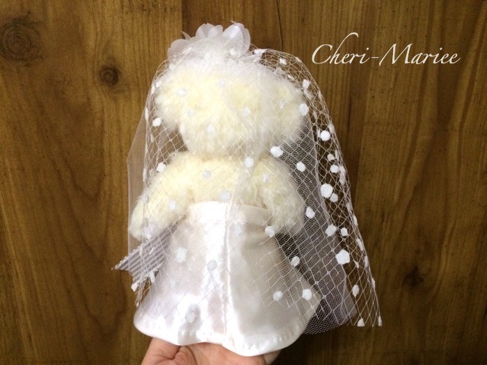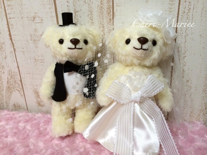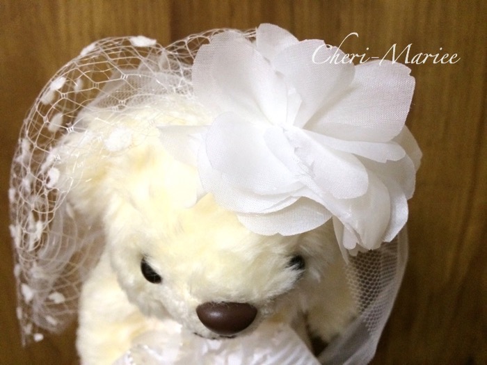 大きなお花のヘッドコサージュとモダンなベールにうっとり☆ 雰囲気を演出してくれるベア。 |