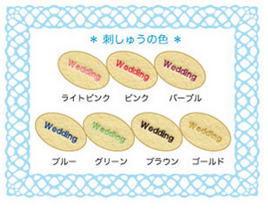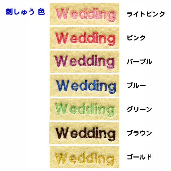 「ピンク」の刺繍糸の場合の例です。「Wedding」の文字は
