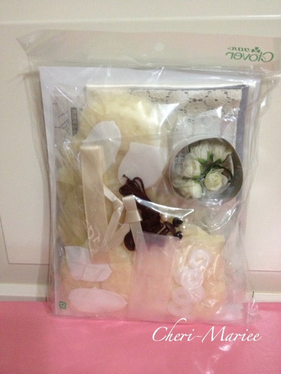 キットの中身です。ウェルカムベア作りに必要な材料がセットになっています。