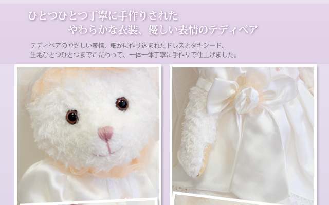 「愛され続けるブライダルベアの、柔らかで優しい表情がそのまま。