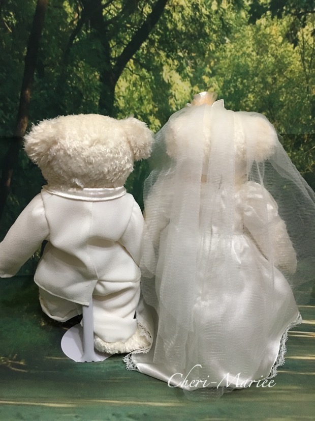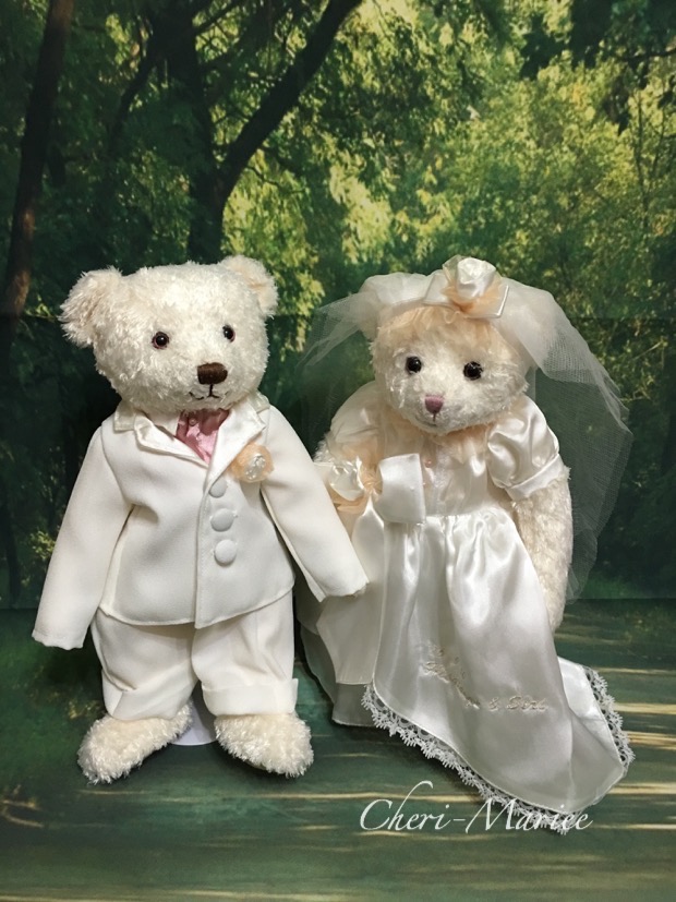 トップページ>ウェディングドール>刺繍入り完成品ウェルカムベア> Newプレミアム ウエディングべアドレスにお名前&日付刺繍入り |