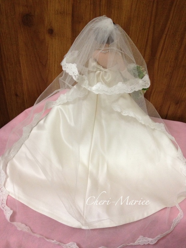 | 免責事項 | ウェディングドールはお客様からお借りしたお写真に基づいてお作り致しますが、着せ替え人形用の生地や材料は数が限られているため、細部まで全く同じものをお作りすることはできません。 人が着るウェディングドレスと同じレース模様では人形にとっては大きすぎたりします。ですので、小さい材料を工夫して組み合わせて制作いたします。 又、生地の色、素材に関しても全く同じものをご用意出来るとは限りません。出来る限り近しいものをお選びしてお作り致しますので、ご理解頂きますようよろしくお願い致します。 |