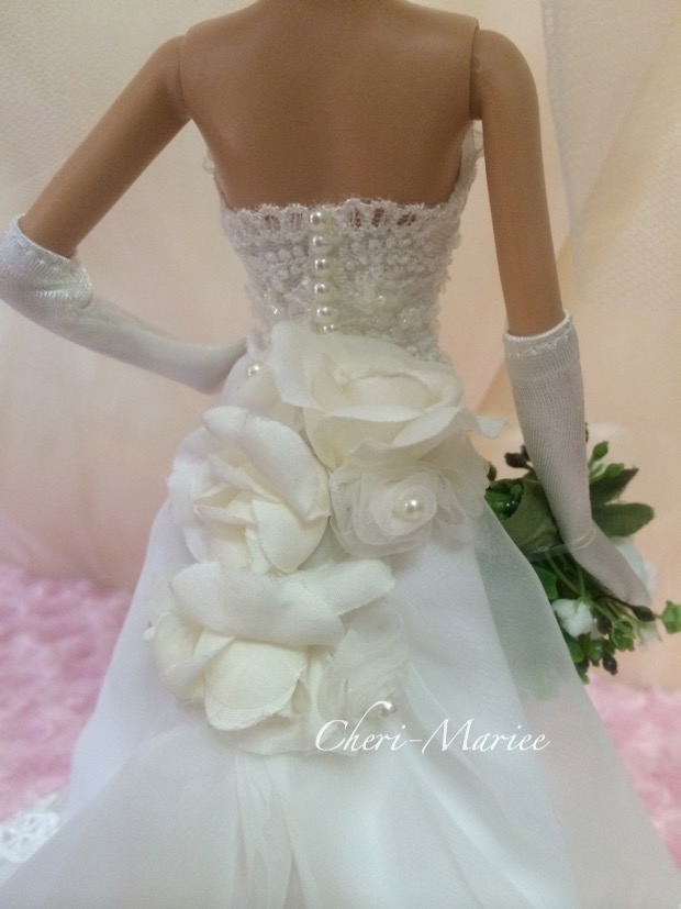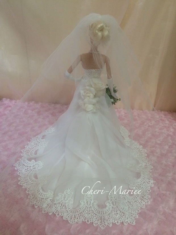 | 免責事項 | ウェディングドールはお客様からお借りしたお写真に基づいてお作り致しますが、着せ替え人形用の生地や材料は数が限られているため、細部まで全く同じものをお作りすることはできません。 人が着るウェディングドレスと同じレース模様では人形にとっては大きすぎたりします。ですので、小さい材料を工夫して組み合わせて制作いたします。 又、生地の色、素材に関しても全く同じものをご用意出来るとは限りません。出来る限り近しいものをお選びしてお作り致しますので、ご理解頂きますようよろしくお願い致します。 |