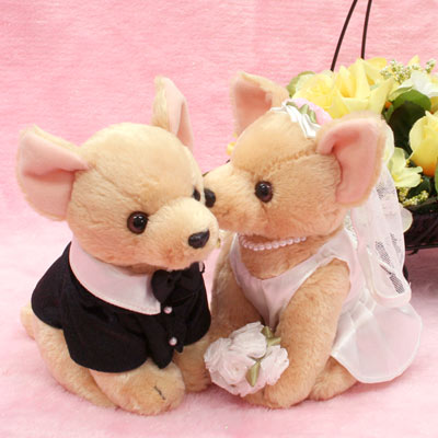 | 内容 | ぬいぐるみ2体 フェザーシャワー1箱プレゼントとしてはもちろん、受付のマスコットや、新郎新婦のお色直しの時にテーブルデコレーションとしてなどいろいろ使えるチワワがモチーフのウェディングセットです。 ぬいぐるみの周りに飾って楽しむフェザーシャワー1袋がついています。 |