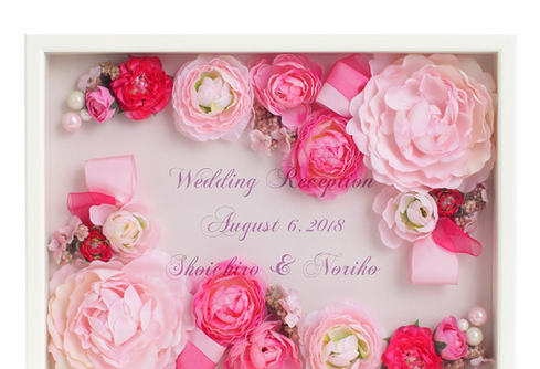 アートフラワーをふんだんにあしらった、フラワーアレンジつきウェルカムボードなら |