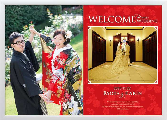 <フォトウェルカムボード・2紅(ホワイトフレーム)>