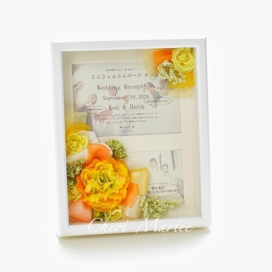 額:約22×27×4.5cm お裁縫が苦手・・時間がない!そんな方にお勧め簡単キット。手作り初心者の方でもとっても作りやすいウェルカムボードキットです。額から台紙を外し印刷、または手書きで記入した紙を裏面から固定。テープ等でしっかり固定した台紙を額に戻すのみの簡単キットです。台紙には既にお花付きです。 キット内容●額・・太子サイズ 用意するもの両面テープ |