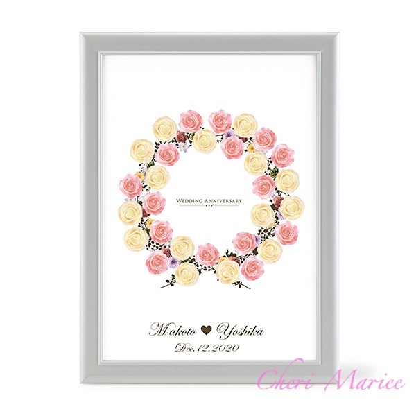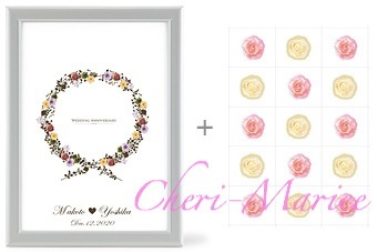商品番号:ENW-015 商品名:シェリールメモリーボード「フラワーリース」 (ホワイトの額縁つき、お二人のお名前&記念日プリント込み価格) 〜ショッピングカートや、買い物かごでのご注文に 不慣れな方は、下記の方法でもご注文いただけます。〜 (簡単ご注文フォームはこちらから) ↑PDFファイルが開きますので、ご自宅のプリンターで ↑ご都合のよい時間帯に、こちらからお電話いたします。 ↑お急ぎの方は、お気軽に納期目安をご相談ください。 |