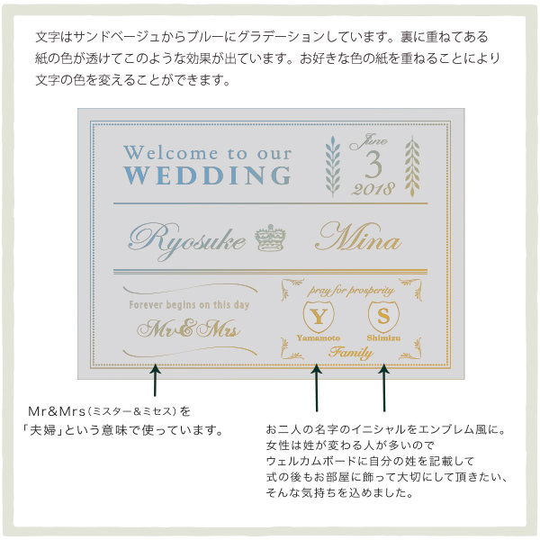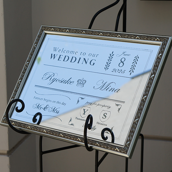 文字をスタイリッシュに配置したミラーのウェルカムボードです。