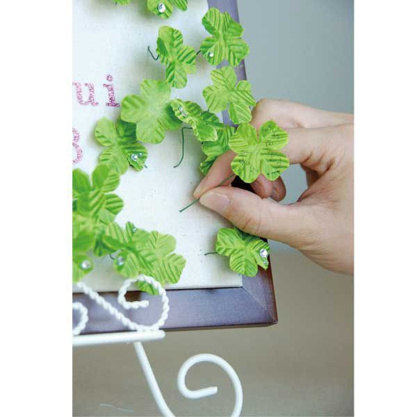 簡単に作れます。ボードに布を貼って、クローバーを挿したりシールを貼ったりするだけ!