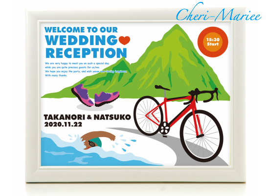 パールの光沢がステキなフレーム入り!トライアスロンが好きな2人のためのウェルカムボード