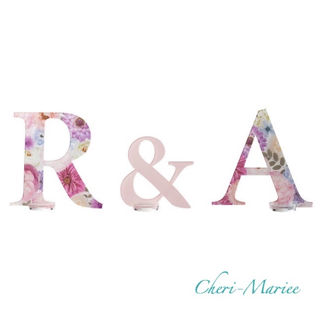 アクリル素材で透明感のある花柄イニシャルボード。挙式後は新居に飾っていただけます。◎アルファベット2個:W7.3〜20.5×D0.4×H14.5cm「&」1個:W11×D0.4×H11cmアクリルスタンド3個※おふたりのイニシャルをお作りしますので、ご使用日の3週間前までにご注文ください。 |