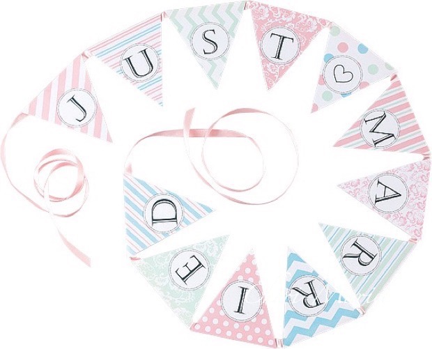 「JUST MARRIED(結婚しました!)」と書かれたキュートなガーランド