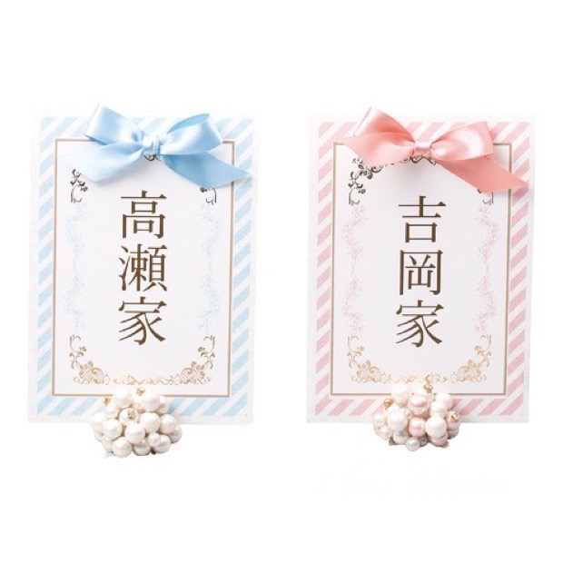 新郎様側は水色、新婦様側はピンクのデザインです。