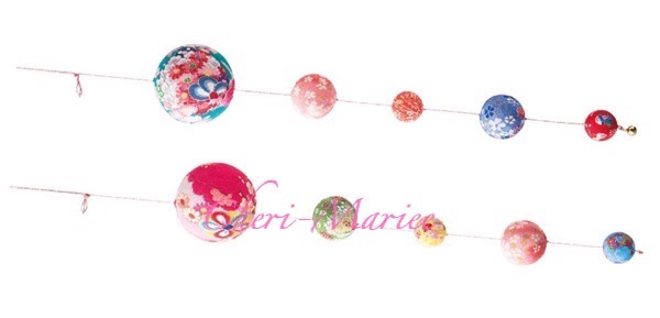 つるしたり、ガーランドのように飾ったりできるオーナメント。 2個セットで、受付テーブルの両脇に飾るのも◎! ◎てまりオーナメント2個 最大φ9cm 長さ:約68cm(てまり部分:約54cm) ※てまりの色柄は多色多柄アソート