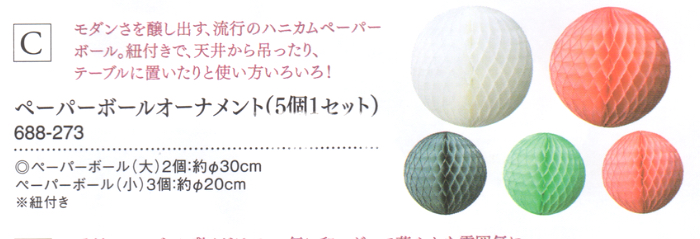 <ペーパーボールオーナメント(5個1セット)>