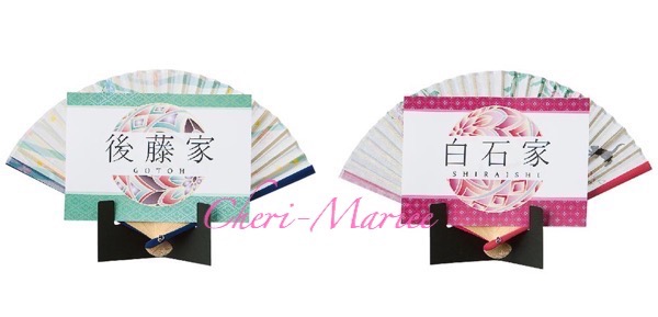 後使いできる扇子は色別で、新郎側・新婦側がひと目で分かります。