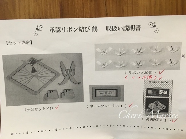 シェリーマリエ>ウェルカムボード>テーマ別・ウェルカムスペース演出セット一覧> 祝・おもてなしシリーズ>承認リボン結び・鶴(リボン30個セット) |
