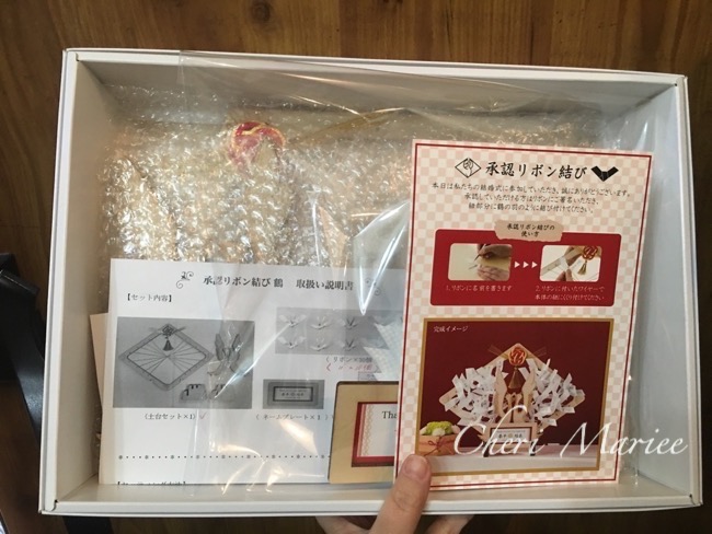承認の証のリボンが未来へ羽ばたく鶴の羽根になる。二羽の縁起の良い鶴が、羽を広げておふたりの門出を祝福。