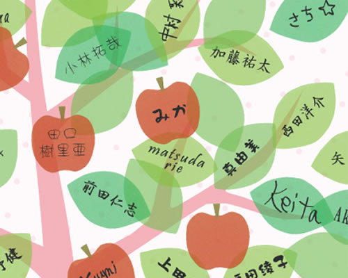 一般的にはスタンプを指につけて枝の部分に指紋を押し、そこにお名前を