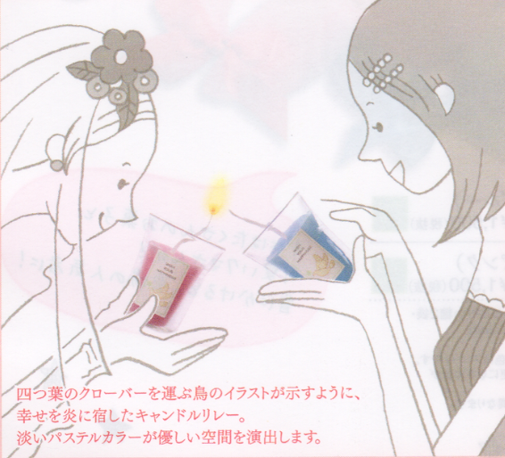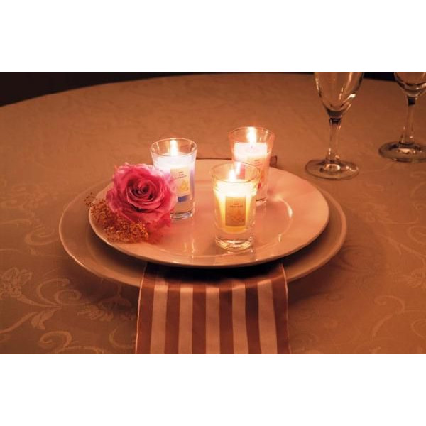 各ゲストテーブルにおふたりが灯した聖なる火を、ゲスト一人ひとりがキャンドルからキャンドルへとつないでいきます。最後はおふたりがメインキャンドルへ点火。出会えた奇跡に感謝しながら、みんなで優しく吹き消しましょう。願いや想いを閉じ込めると言われる神聖な儀式です。ゲスト参加型の人気の演出です! ◎キャンドル1個 φ4.5×H7cm/ガラス・パラフィン |