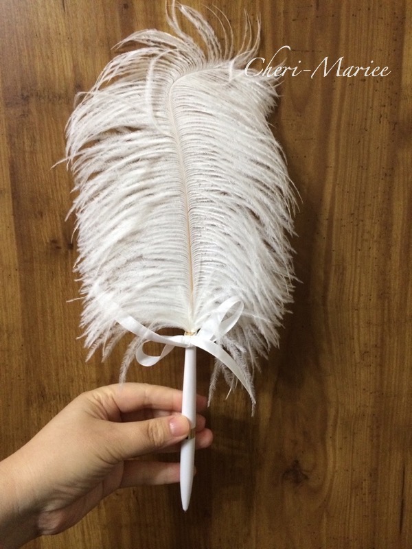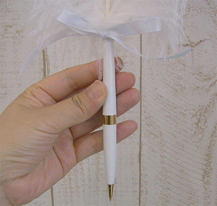 | 内容 | ウェディングといえば羽ペン! 結婚証明書やゲストブックにサインをするときに、 こんな素敵な羽ペンを使用すれば、雰囲気も盛り上がり ますね。とても写真映えのするアイテムです。 替え芯オプション販売がありますので、挙式後も使えて便利! ※天然素材のため、羽の大きさは商品により異なります。 替え芯のみの販売はありませんので、ご了承ください。 ※台座部分で自由に角度調整が可能です |