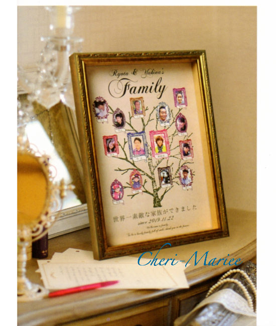 二人が出会った奇跡の素晴らしさを感じる家系図仕立ての記念品。