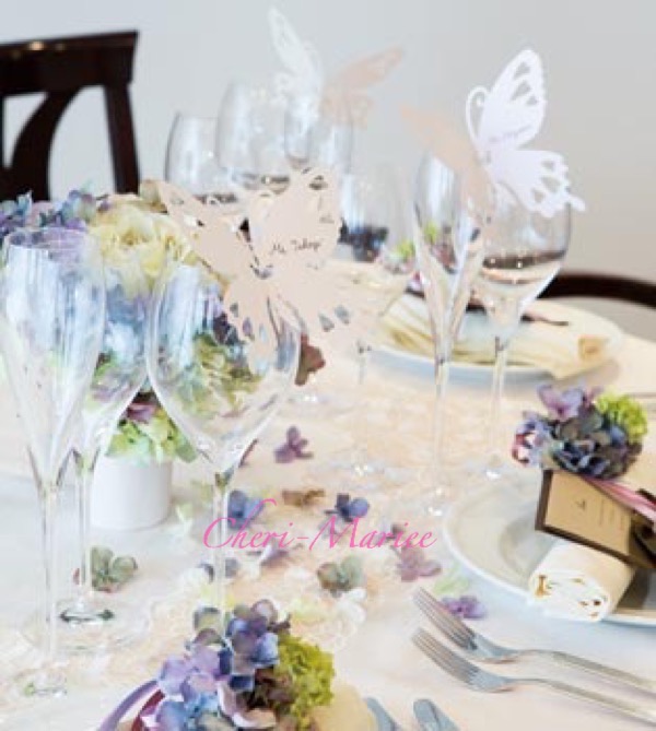 披露宴を素敵に演出するためのウェディンググッズが豊富です。 ゲストに真心を伝えるための席札やグラスカードをお探しならシェリーマリエへ。 |