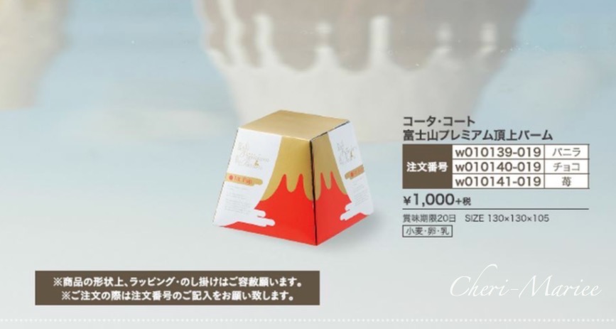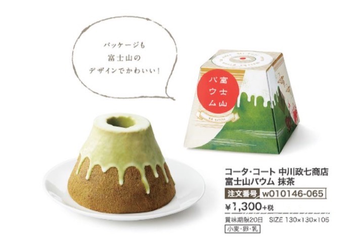 | 商品内容 | 品番:w010140 本体価格1000円(消費税・送料別) インパクト大の富士山型バウムクーヘンはおめでたい結婚式にぴったりのギフト。 縁起が良いとされる富士山がホワイトチョコレートの雪をかぶったバームクーヘンになりました。おめでたいモチーフにゲストもあっと驚くはずです。