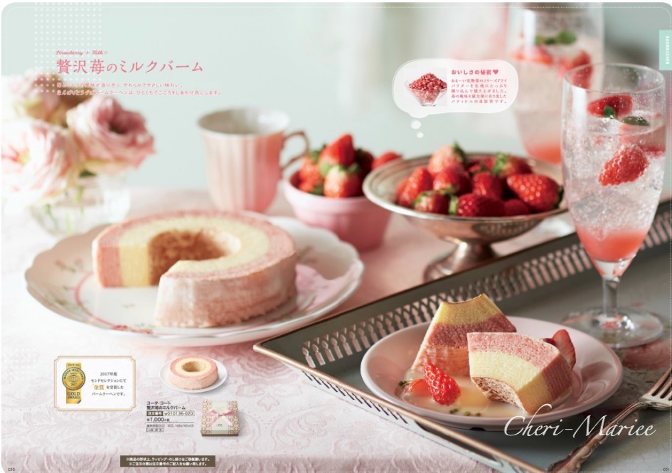 | 商品内容 | 品番:w010136 本体価格1000円(消費税・送料別) (簡単ご注文フォームはこちらから) ↑PDFファイルが開きますので、ご自宅のプリンターで印字してご利用ください。 いちごと濃厚なミルクを贅沢に使った引き菓子に喜ばれるバウムクーヘン。 甘い完熟苺のフリーズドライパウダーを生地にたっぷり練りこんで焼き上げました。苺の風味を最大限に引き出したパティシェの自信作です。