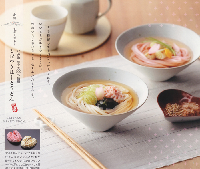 | 内容 | うどん(北海道産小麦100%使用)50g(赤・白)×各1袋 白いり胡麻10g×2袋 カットわかめ3g×2袋 かつおパック3g×2袋 かつおふりかけ5g×3袋 ※ボックスイメージ |