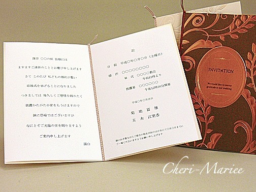 商品内容 | 商品番号:inv_romanesque 商品名:ロマネスク招待状(ブロンズまたはパールから選べます)本体価格:230円 (消費税別) ※表示価格はすべて1部となります。端数でのご注文が可能ですが、 「印刷予備用紙つきシリーズ」の中で組み合わせていただき、 合計5000円以上よりご注文を承ります。 (例:招待状32部+席次表54部+席札54部など) (簡単ご注文フォームはこちらから) ↑PDFファイルが開きますので、ご自宅のプリンターで ↑ご都合のよい時間帯に、こちらからお電話いたします。 ↑お急ぎの方は、お気軽に納期目安をご相談ください。 |
