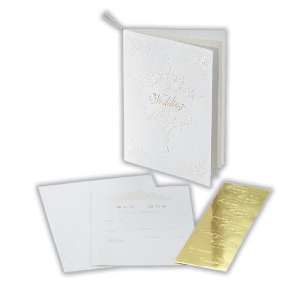 カード154×108mm 10部セット:カード10枚 A5中紙11枚(インクジェット対応) 返信ハガキ10枚 封筒10枚 ゴムひも10本 封印シール10枚 【表紙】Wedding 印刷内容のダウンロードは、中紙のみに対応 |