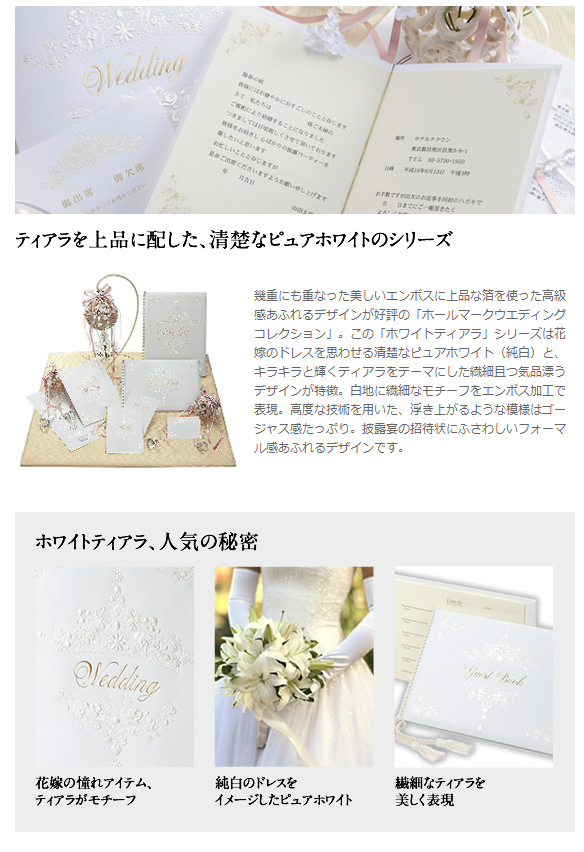 テンプレートを利用し簡易に作成できる「ウエディング簡易作成ツール」も日本ホールマーク ホームページより利用可能。シリーズにぴったりのデザインを使用し、自分だけのデザインが簡易に作れるこの「簡易作成ツール」は、手作りウエディング派の強い味方です。 |