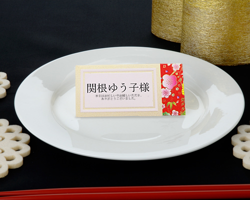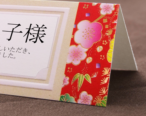 絢爛(けんらん)豪華な色打掛がモチーフです。 席札 絢(あや) 手作りキット 本体価格600円(消費税・送料別) | |