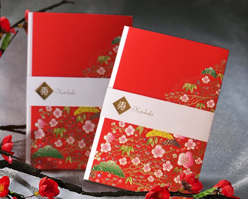 絢爛(けんらん)豪華な色打掛がモチーフです。 結婚式招待状 絢(あや)(10枚セット) 手作りキット 本体価格2400円(消費税・送料別) | |