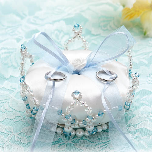 キラキラ輝くクラウンのリングピロー、サテン生地とオーガンジーリボン、