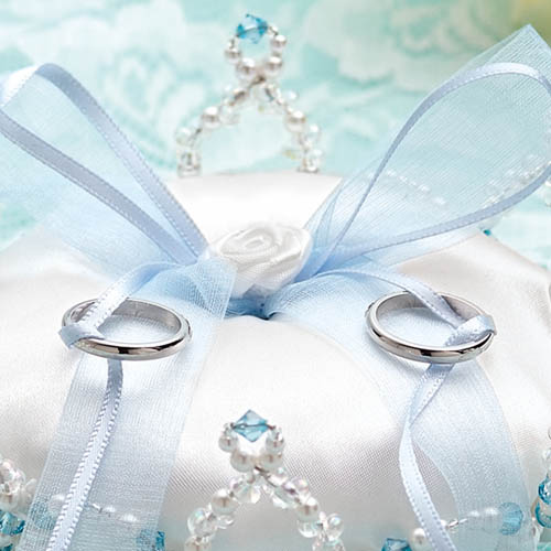パールビーズのクラウンが素敵な新しいタイプのリングピローです。