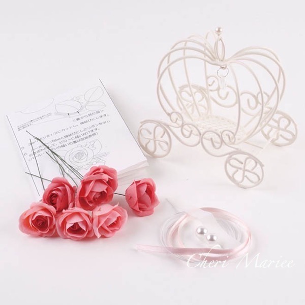 | ■サイズ 約13cm×約13.5cm×約9cm ■制作時間 約60分 ■キット内容 かぼちゃの馬車、リボン、ローズ、パールビーズ、ワイヤー、お花のテープ ■用意するもの はさみ、ペンチ、ニッパー、ボンド又はグルーガン |
