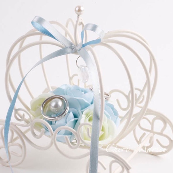 | シンデレラのかぼちゃの馬車をイメージした可愛いリングピロー。パステルカラーの優しいお花の色がロマンティックな気分を盛り上げてくれます♪作り方もとっても簡単なので、お式まで時間のない方でも短時間で制作できます。 | |