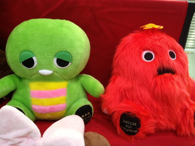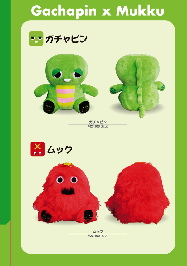 緑色のガチャピンは恐竜の男の子、赤色のムックは雪男なのです。