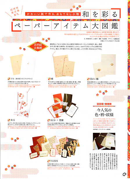 P136~P138にかけての「和を彩るペーパーアイテム大図鑑」に当店の和風ペーパーアイテムとお店紹介の記事を掲載していただきました。