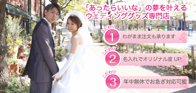 「世の中にはこんな素敵なウェディング小物がありますよ。そして日本全国どこにお住まいでもそれらをネット通販で手に入れることができますよ」とお伝えしていこうと、思い立ち、始めたのがこのホームページです。