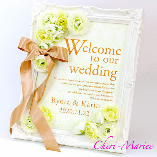 <フラワーウェルカムボード momo(モモ)ホワイトグリーン>