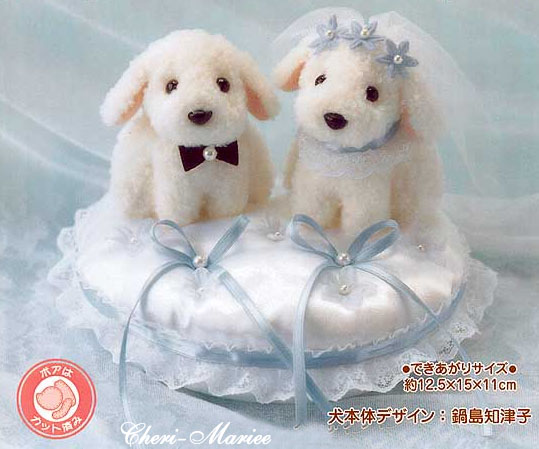レモン色の小花とリボンがフレッシュな印象の、ワンちゃんつきリングピローです。