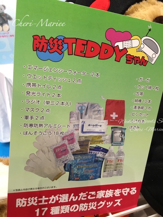 災害時に使える防災&避難グッズが入っているテディベアが生まれました。
