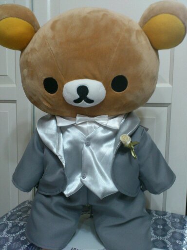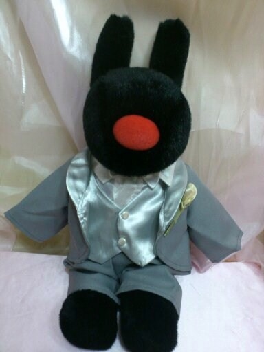 スヌーピーのぬいぐるみに特大タキシードを着せたお客様の例です。