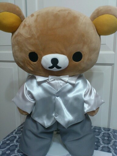 身長約50cmのぬいぐるみにおすすめです。 ぬいぐるみは商品に含まれませんので、お手持ちのぬいぐるみを 「このぬいぐるみは着られますか?」というお問い合わせがありましたら、 身長が50cmでも、手足の長さ次第では、タキシードがブカブカして しまうこともあります。ドレスは比較的大丈夫なのですが、新郎の という問題があります。 実例をいくつかこのページでご紹介していきたいと思いますので、 まずはご相談ください <タキシードサイズ> (シャツ) そで丈(肩の先端からシャツの袖口までの長さ):15cm 袖の幅:12cm 身幅:30cm 身丈:20cm 首回り1周:40cm アスコットタイの長さ:6cm (ジャケット) そで丈(肩の先端からシャツの袖口までの長さ):12cm 袖の幅:13cm 身幅:30cm 身丈:22cm ブートニア長さ(茎部分含む):7cm (ズボン) ウェストサイズ(最大で):50cm ズボン丈(全体で):25cm 股上:15cm 股下:10cm <ドレスサイズ> ウェストサイズ:約32cm 前身頃(胸当ての部分):約7cm スカート丈(ウェストから裾まで):27cm |