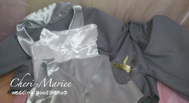 グレータキシードセットは、シャツとベスト、ジャケットとパンツ、そしてブートニアがセットになっています。